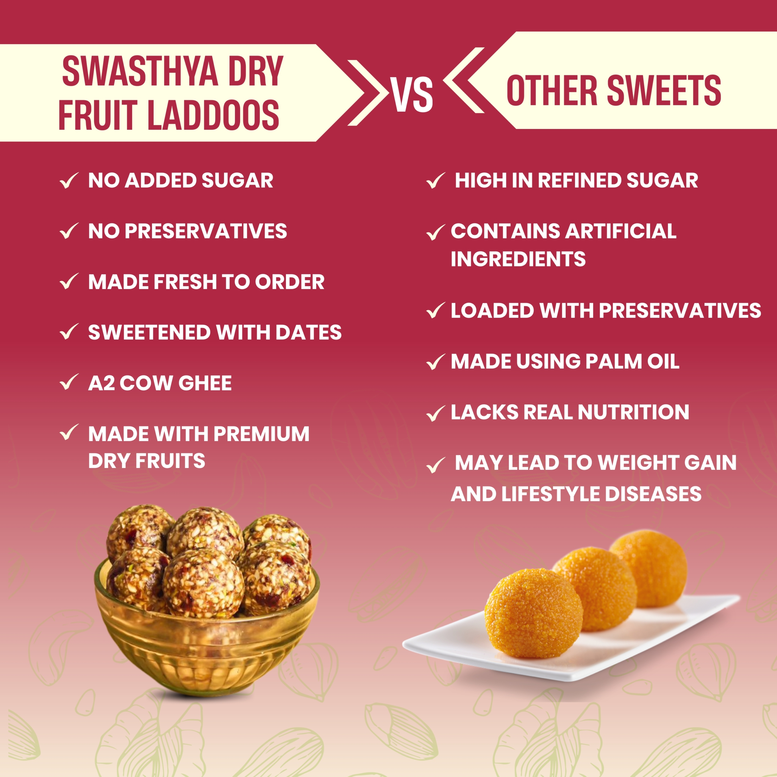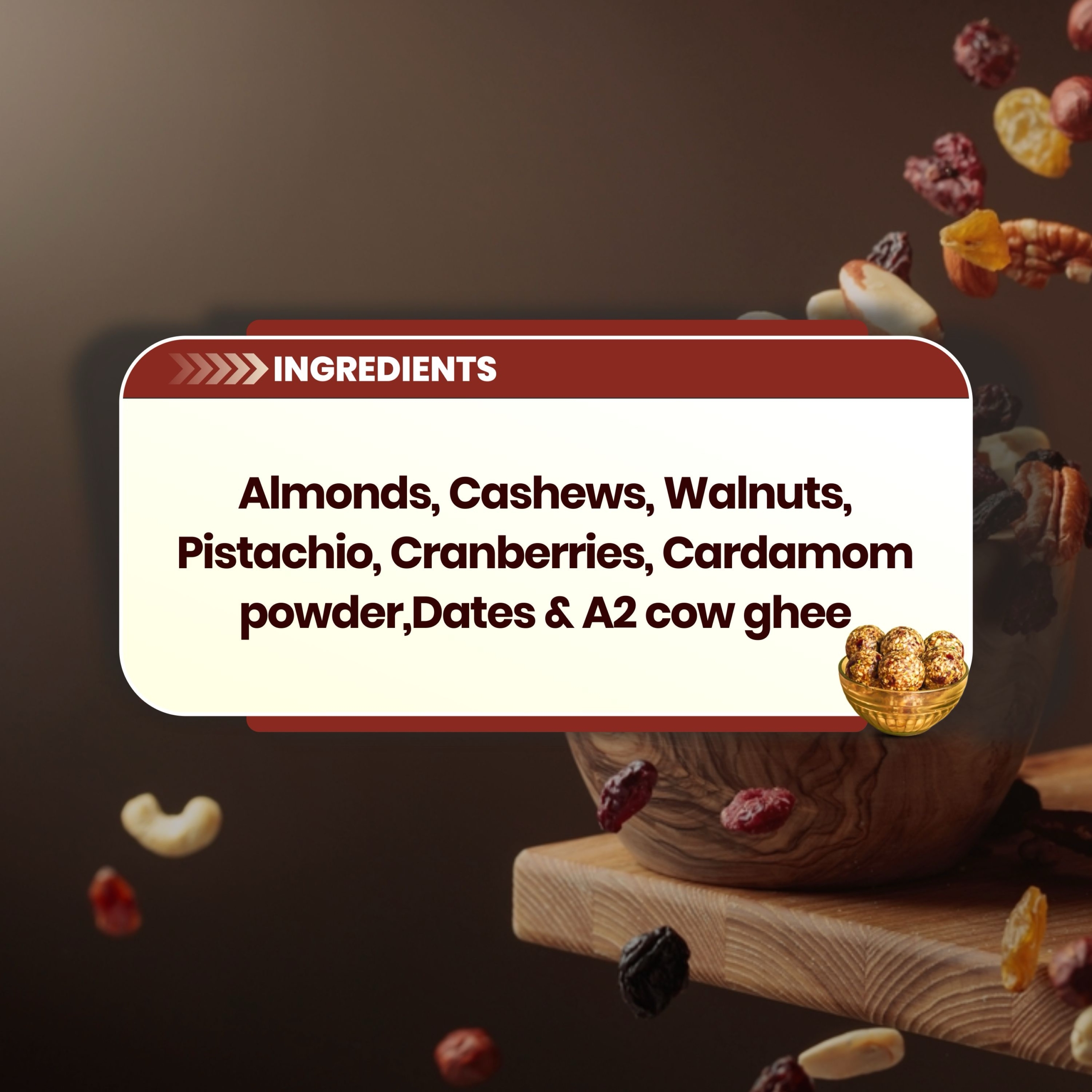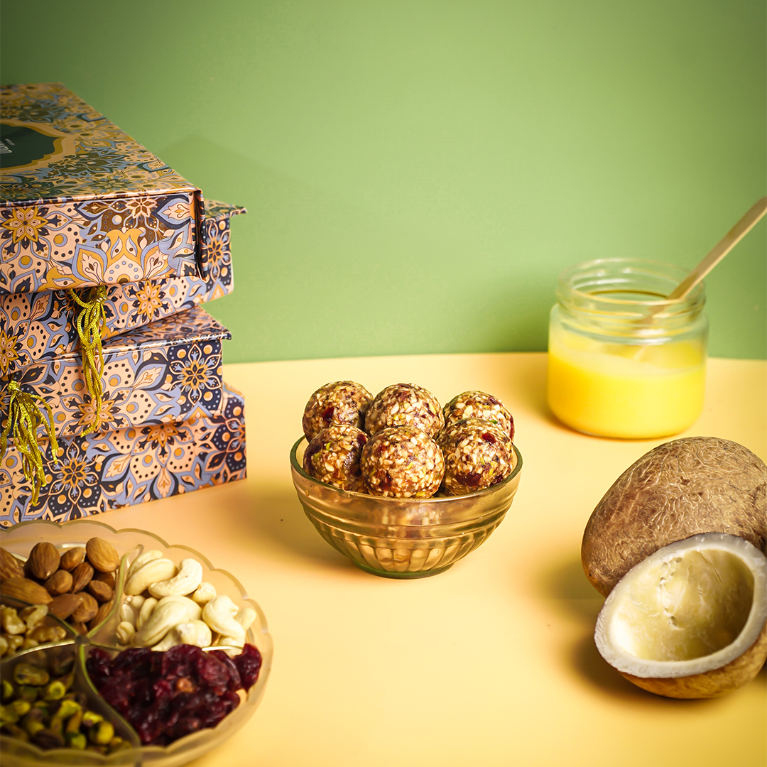 Indulge in the goodness of our Dry Fruit Laddoo, crafted with a rich blend of premium dates, almonds, cashews, and pistachios, slow-prepared in pure A2 Cow Ghee. Naturally sweetened with dates and free from refined sugar or artificial preservatives, these laddoos offer a healthier alternative to traditional sweets without compromising on taste. Each bite delivers wholesome energy and satisfying flavour, making them perfect for snacking between meals, festive gifting, or enjoying with your evening tea. Made with care and real ingredients, these Dry Fruit Laddoos are a delicious way to nourish your body and delight your taste buds